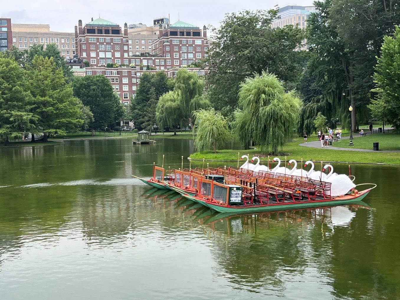 Then we walked west toward the Boston Public Garden that abuts Arlington Street. There was another target sighting: the swan boats made famous in E.B. White’s The Trumpet of the Swan. If you don’t recall the connection, let me refresh your memory.