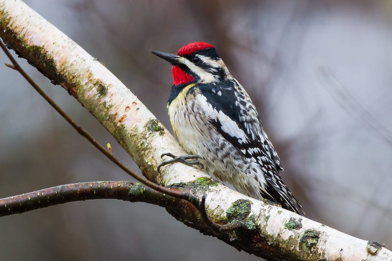 The Yellow-bellied Sapsucker gets most often cited by people who are less familiar with birds. Walk through any neighborhood park and you might get someone asking with a laugh, “Whatcha looking for, a Yellow-bellied Sapsucker?” Well, heck yeah! Sapsuckers are serious stuff. Our only migratory woodpecker and a thrill to see in these parts each spring.