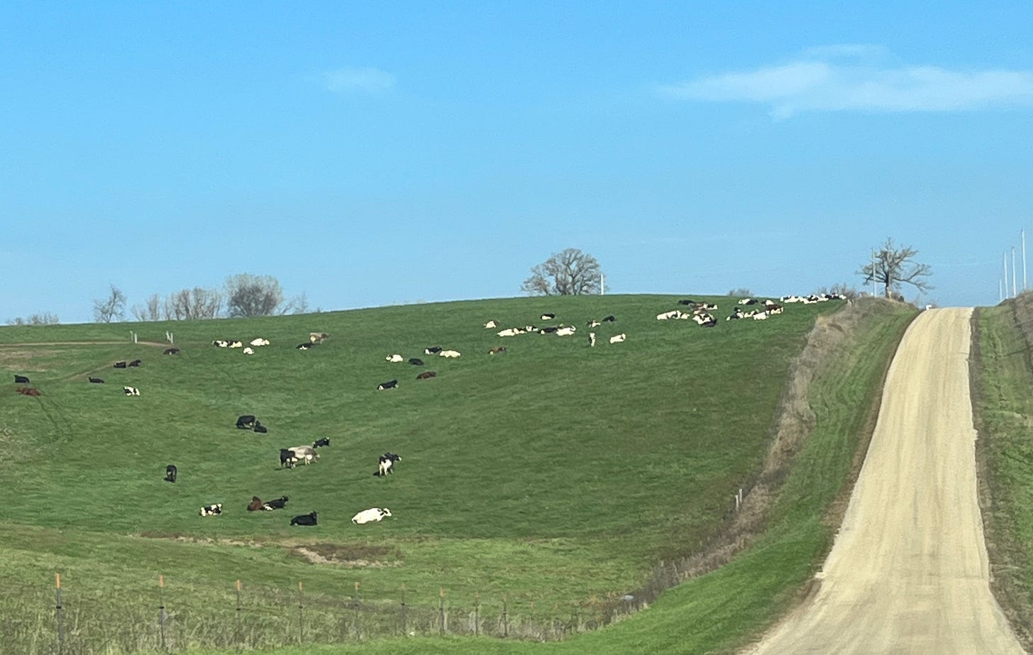 Outside of Argyle, I almost top 1,000 feet again. The terrain here is truly beautiful. If this was the East Coast, it would be the subject of umpteen breathless travelogues and Currier and Ives paintings. The New York Times would file gauzy portraits of a quaint Americana at our doorstep. I imagine “36 Hours in the Driftless Region.”