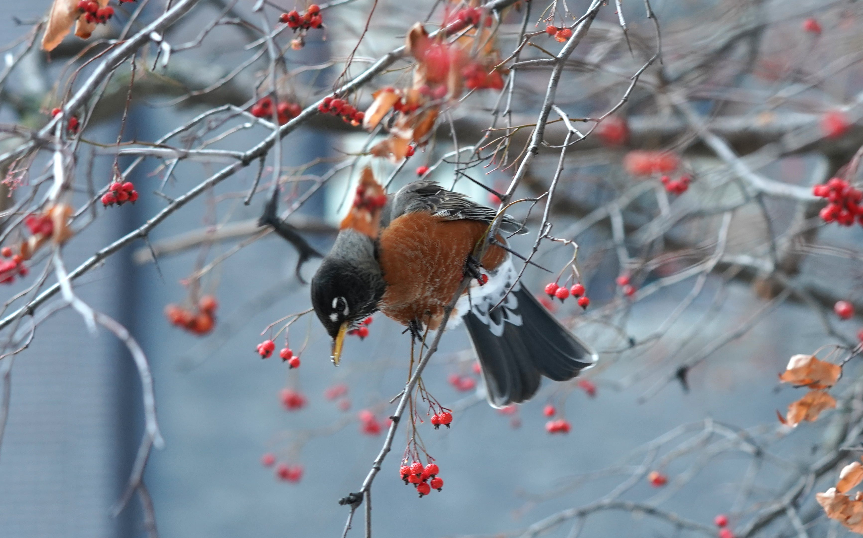 It’s been a good winter for American Robins locally. There’s probably a scientific reason for this, but all I know is that I’ve found concentrations of robins throughout the city and suburbs. Discussing robins in winter has long been a hobby horse for me. In one of the first posts for Ye Olde Substacke, I spoke with Bob Fisher about robins. No one has seen more robins in Chicagoland winter than Bob. In winter, robins subsist on berries; the ones we see here are likely birds that breed much farther north—note that robins breed north of the Arctic Circle!