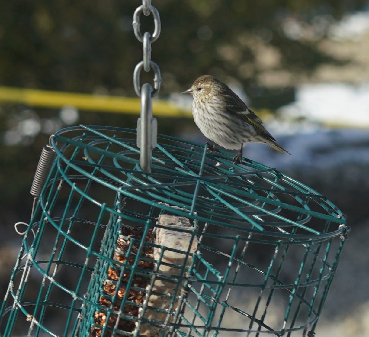 In the handful of years I’ve been birding the Lake Border Upland, I can count only a couple of observations of a Pine Siskin. These small finches are a sort of nomadic species, especially in the East. They chase after seed crops, and truly delight in the catkins high in mature trees. This winter has been a good one for siskins in this corner of the Upper Midwest. I had to do a double-take when I heard their buzzy, rising zrrreeee call at a favorite winter spot for passerines. Then, on the same day, a careful study of my feeder yielded a siskin in among the goldfinches. They have been regular here for several weeks now.