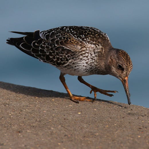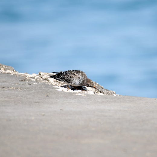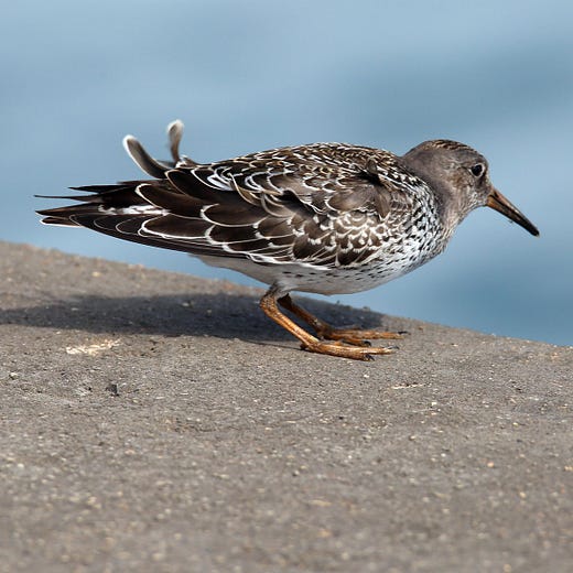 Speaking of shorebirds…an early-season Purple Sandpiper, a bird of the craggy shores of the North Atlantic, showed up at Montrose Point on Saturday.