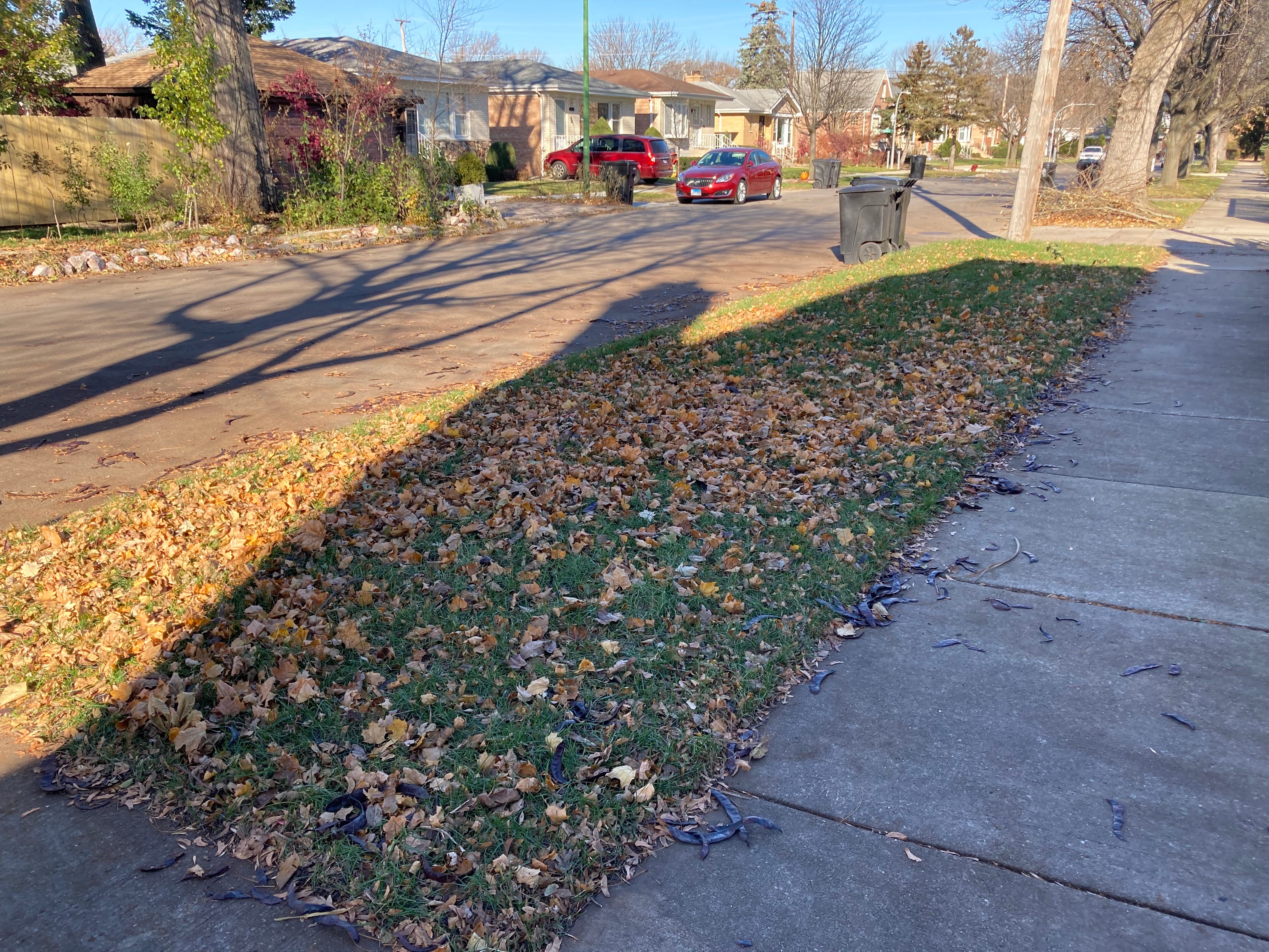 Rake? Heck, I didn't even mow the lawn this year. It got long, fell over, thatched. Didn't go to seed, didn't look bad enough for the condo neighbors to complain. As for raking, I just scoop up the piles of leaves on the carriage walk and dump them into any areas in my Uptown native parkway and front-yard gardens that the Norway maple hasn't already dropped on. I came to terms with the non-native maple a long time ago--it's the shade in my shade garden, and it's a mature tree providing important ecosystem benefits; it gets the same care as my beloved old catalpa. The catalpa leaves decompose nicely; as mentioned by another person, the Norway maple leaves turn into a gloppy mat that has to be peeled off in spring once frost danger passes. I used to be able to get oak leaves, which I put through a leaf chopper for all the woodland natives. I leave the coneflowers, rudbeckia, liatris and other tall perennials as long as they're standing (or can be propped up to look presentable to the neighbors) to provide food and shelter for overwintering vertebrate and invertebrate wildlife. But it's not all hands-off. I spent the warm days this week watering one last time, especially the foundation evergreens that predate the native garden and mulching more.