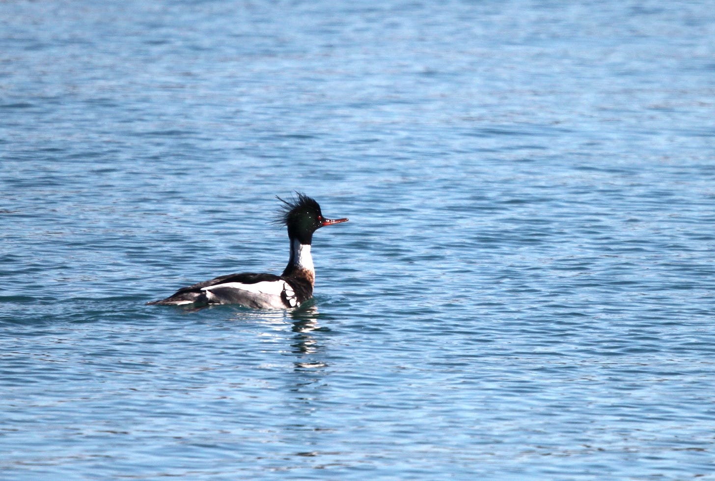 Red-breasted Mergansers migrate to Chicago each winter from points north, from the fast-moving streams in northern Michigan and Ontario where they nest.