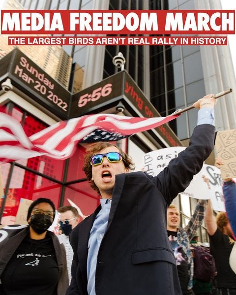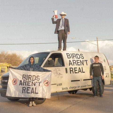 Then I started to follow the Birds Aren’t Real “movement” and began to take a liking to it. Call it subversive and ironic, not unlike one of Sacha Baron Cohen’s projects. It also makes a point. Birds Aren’t Real turns out to be a spot-on sendup of conspiracy theories. With college student Peter McIndoe playing the founder and spokesperson for the movement.