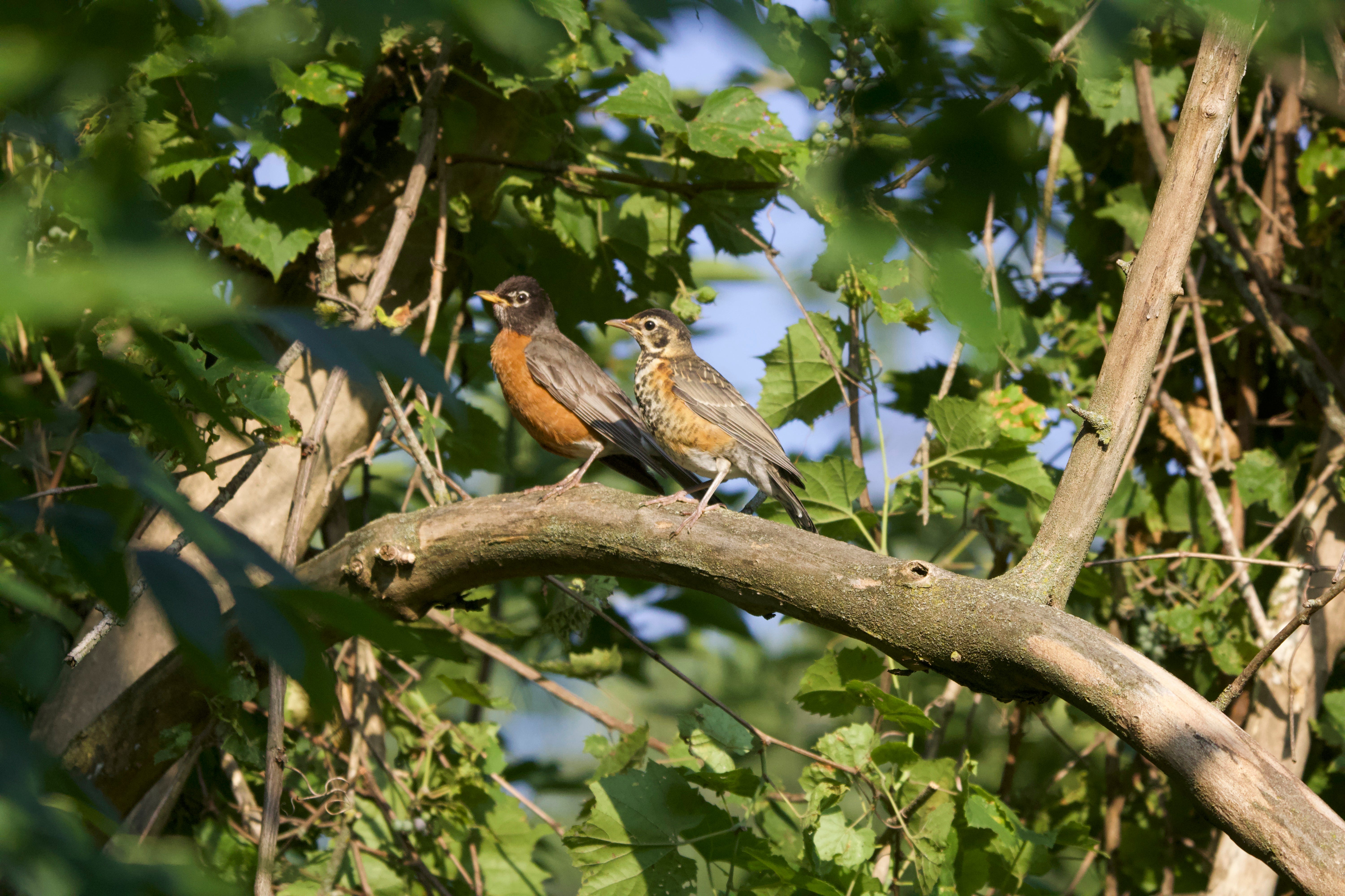 Two other discoveries are in nearby forest preserves. One is down the hill from the upland, along the North Branch lowland forest. There’s a thick tangle of grapevines draped over several trees. All sorts of birds, from robins to woodpeckers to buntings have been visiting these vines as the fruit has matured. It seems this is going to be a place to keep checking lest any frugivorous rarities arrive this fall.
